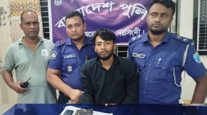 শনিবার ৩১ মে নরসিংদী শিবপুর মডেল থানা পুলিশের একটি টিম গোপন সংবাদের ভিত্তিতে শিবপুরের আতঙ্ক, শীর্ষ সন্ত্রাসী কিশোর গ্যাংয়ের মূল হোতা মোহাম্মদ আলী হোসেন @ আলী(২৮), পিতা-মৃত, আব্দুল সাত্তার, সাং-