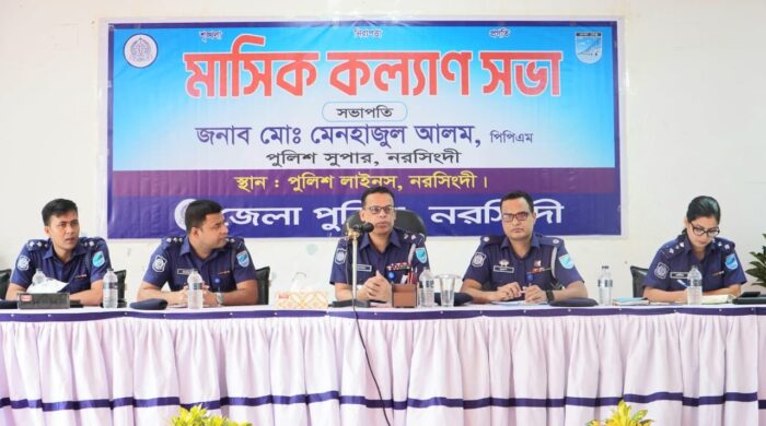 মঙ্গলবার ০৯ সেপ্টেম্বর ২০২৫ নরসিংদী পুলিশ লাইন্সে জেলা পুলিশ, নরসিংদীর মাসিক কল্যাণ সভা অনুষ্ঠিত হয়। সভায় সভাপতিত্ব করেন নরসিংদী জেলার পুলিশ সুপার জনাব মেনহাজুল আলম পিপিএম মহোদয়। সভায় বিভিন্ন পদবীর