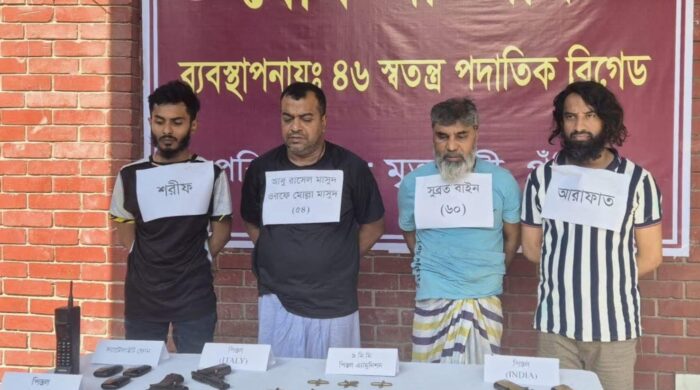 সোমবার ২৬ মে নরসিংদী মডেল থানা পুলিশের বিশেষ অভিযানে শীলমান্দি এলাকা থেকে ১টি বিদেশি পিস্তল,৫ রাউন্ড তাজা গুলি উদ্ধার সহ ৩ জন গ্রেফতার। গ্রেফতারকৃতরা হলেন, ১।মোঃ সাব্বির হোসেন(২০), পিতা-বিল্লাল হোসেন,